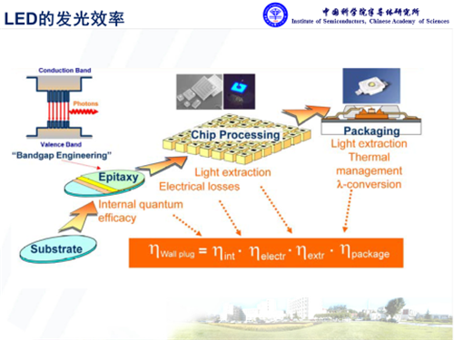 氮化鎵是直接帶隙的半導(dǎo)體材料,在光電應(yīng)用方面具有獨(dú)特優(yōu)勢?;诘壍腍B-LED對(duì)于通用照明來說,其核心問題是發(fā)光效率。其中外量子效率主要取決于三個(gè)層面的因素,內(nèi)量子效率、光提取效率,還有封裝方面的熒光轉(zhuǎn)化等效率,而且每個(gè)環(huán)節(jié)都息息相關(guān)。