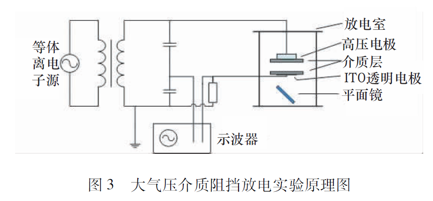 我們這里研究的大氣壓介質(zhì)阻擋放電和剛才講的非線性動力學(xué)到底有什么關(guān)系呢?圖3是華南理工大學(xué)的放電實驗原理圖。從電路的角度來看,這個實驗系統(tǒng)有一個交流電源,這個電源連接到放電室中,放電室里有電極和阻擋介質(zhì),在實驗中我們可以直接測量電源電壓和放電電流。
